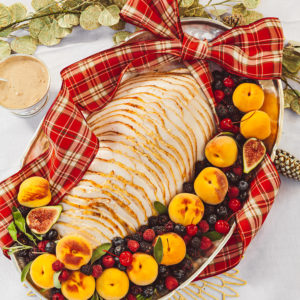 Pechuga de Pavo al Horno, Decorada con Frutas Frescas y Lazo