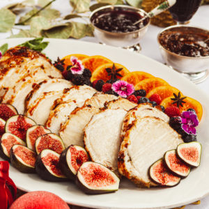 Lomito de Cerdo con Salsa de Higos Decorado con Frutas Frescas
