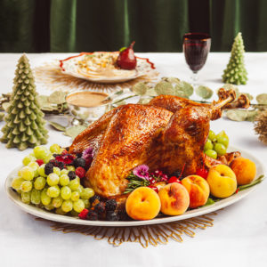 Pavo Entero Horneado, Decorado con Frutas Frescas