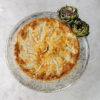 Mezcla de poro cortado en chiffonade, jamón, tocino, huevos, crema de leche y queso parmesano, colocados sobre una masa de harina que se hornea hasta quedar crocante.